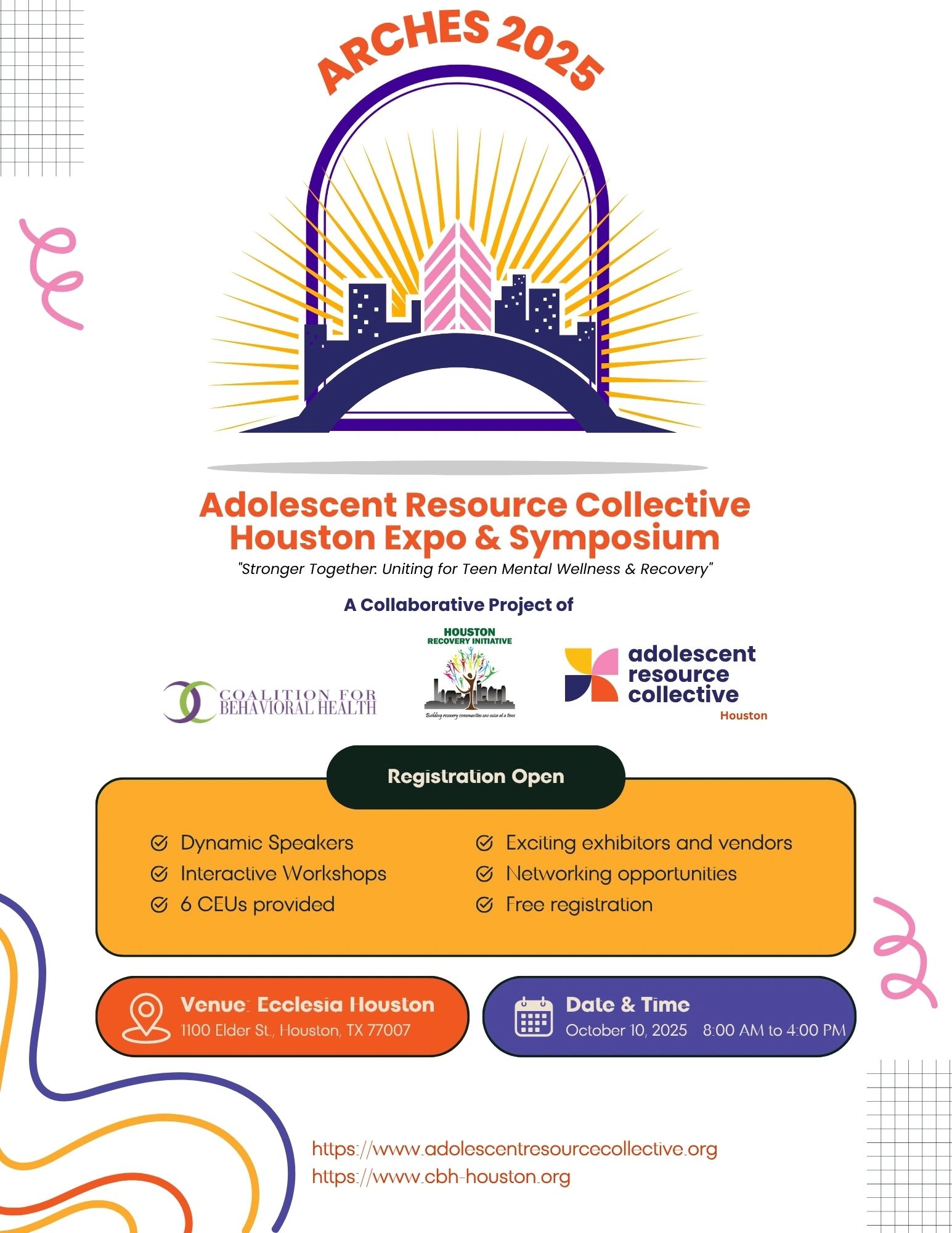 Join us on October 10, 2025 at the Adolescent Resource Collective Houston Expo & Symposium for a transformative event centered on the mental health, addiction, recovery, and justice-involvement of today’s youth.